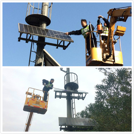 12月12日,集團工程養(yǎng)護部機電設(shè)備維養(yǎng)中心主任助理葉俊及中心幾名隊員,站在凳高車上,頂著寒風(fēng),利用事先準備的手動洗車水槍、拖布等清潔工具對公司路面攝像頭太陽能板進行一一清洗,使原先布滿污垢的面板立刻變得光亮如新。 集團沿線共有40多塊太陽能板。近日,維養(yǎng)中心在設(shè)備巡檢中發(fā)現(xiàn)路面攝像頭太陽能板普遍存在充電電流不足的現(xiàn)象,致使電瓶無法完全充電,一到陰雨天氣或晚上就不能保障攝像頭正常運轉(zhuǎn)。這些太陽能板由于使用年限久(基本都在10年以上),部分面板晶片已出現(xiàn)老化破損,加上冬季日照時間短、強度低等自然因素影響,導(dǎo)致設(shè)備無法有效運轉(zhuǎn),但如果全部更換不僅成本高,而且費時又費力。