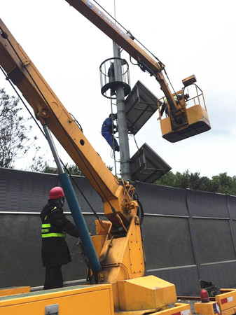上圖為更換太陽能板現(xiàn)場 為盡快解決這一問題,中心聯(lián)系三家太陽能板供應(yīng)商,通過對性能、價格、服務(wù)等多方面比較后,最終選定杭州一家單位負責(zé)此次太陽能板供貨、拆除及安裝工作。1月24日,設(shè)備到貨,但同時也碰上了今年入冬以來最強冷空氣。可若不及時更換,勢必會影響春運安全行車。 面對困難,中心隊員并未退縮,每天起早摸黑,帶領(lǐng)安裝人員親赴施工現(xiàn)場,負責(zé)監(jiān)管和預(yù)警工作。每當(dāng)路面飛駛而過的車輛帶起陣陣寒風(fēng),吹的隊員瑟瑟發(fā)抖時,施工人員都會勸說隊員回車上休息,但都被謝絕了,不僅依舊緊盯施工進度和質(zhì)量,還協(xié)助他們一起拆卸和搬運。在大家共同努力下,所有破損太陽能板在不到3天的時間里被拆卸和更換,比預(yù)定時間提前了整整一天。 更換后的新太陽能板最大輸出功率較之前提高了15%,這將大大提升太陽能板對蓄電池充電效率,保證監(jiān)控云臺有效運轉(zhuǎn),為高速的安全暢通保駕護航。 項寅曉