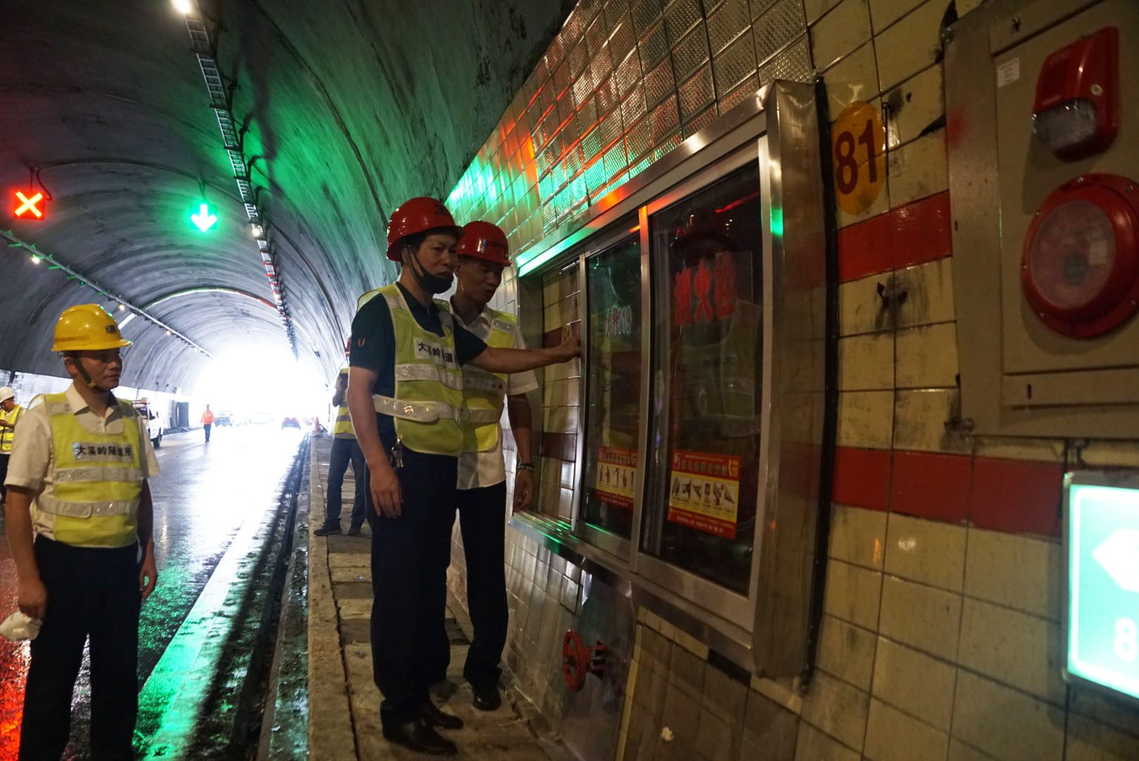 驗收小組人員佩戴安全帽,身著反光背心,從寧向隧道北洞口開始,以徒步方式開展驗收。每次途經(jīng)改建之地,他們便仔細檢測,著重對機電設備安裝調試效果、消防設施配備、緊急電話安裝、蓋板更換、瓷磚修復及清洗情況等進行仔細排查驗收。