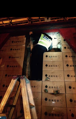 一張照片牽出一輛假冒“綠農車” 3月1日凌晨,車號為滬DL1247的廂式大貨車因假冒綠農車在臺州收費所被設卡攔截,司機因涉嫌詐騙被公安機關帶走調查。 這輛從溫州南入口、車門上印著“蔬果特快”軸限40噸的115型大貨車,在凌晨2:25分駛入臺州收費所,司機自稱運送蘋果。當檢查人員打開車廂后門,搬開疊放著兩層的蘋果箱后,發(fā)現(xiàn)廂體另有天地,一個用鐵條焊成的架子沿著廂壁固定在廂體內部,架子上豎著兩大片木板,木板遮擋了廂體六分之五的面積,透過木板縫隙能看到里面一箱箱的貨物。檢查人員把手伸進包裝箱里,拆開一看,里面全是電動車的配件。