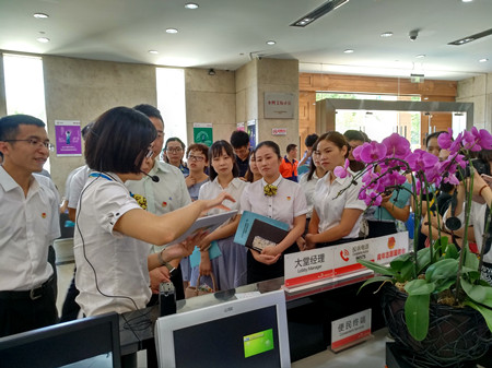 圖為參觀浙江泰隆商業(yè)銀行“小微金融服務(wù)”團(tuán)員先鋒崗
