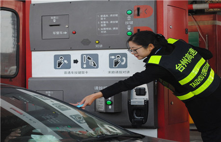 圖為收費(fèi)員文明收費(fèi)現(xiàn)場