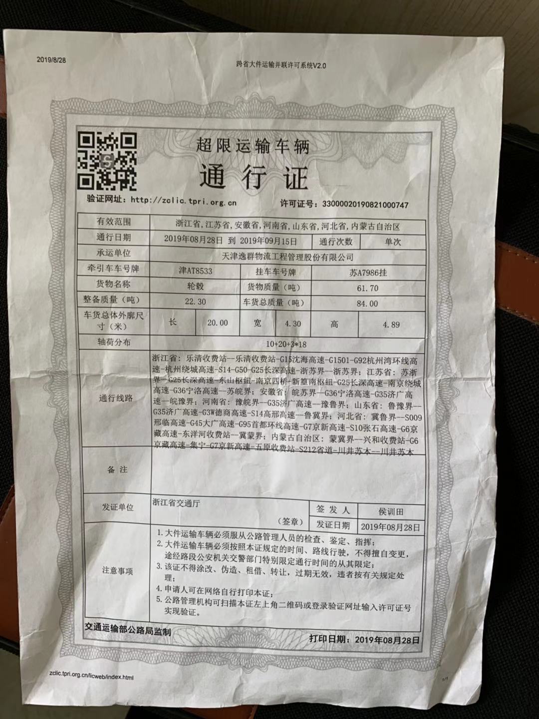 圖為該車(chē)通行證 在此,筆者提醒廣大司機(jī)朋友們,一定要合法裝載,避免超限超載。高速公路現(xiàn)已實(shí)行黑名單制度,違法超限超載運(yùn)輸車(chē)輛將被納入“黑名單”,如未及時(shí)處理將禁止其駛?cè)敫咚俟贰?/span> 楊雅芬
