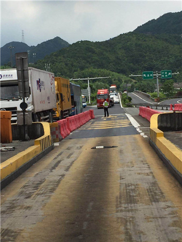已入三伏天,熱浪席卷大地,透藍的天懸著火球般的太陽炙烤著大地。 8:30,正是交接班時間,由于四號崗?fù)ぢ访嬲谑┕?,無法使用,面對這經(jīng)常出現(xiàn)的大流量,出口承受著巨大的壓力,稍有狀況,就會出現(xiàn)嚴重的擁堵現(xiàn)象。班長李寧一邊提醒大家一定要加快收費速度,自己一邊一直站在一號崗?fù)ね饷?,關(guān)注著各個車道可能出現(xiàn)的突發(fā)情況。收費員蔣弓則奔走于5號車道和ETC車道之間,處理著隨時而來的誤闖車和黑名單車輛。所有的機動人員、行政人員已全部到崗待命。