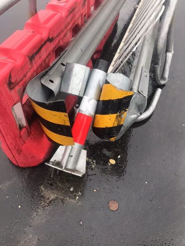 圖為被撞壞的設(shè)施 當(dāng)天10點(diǎn)10分, 該所出口外廣場(chǎng),一輛5類大貨車趁著雨勢(shì)較大,竟私自將道路中間水碼移開,然后違規(guī)掉頭撞壞隔離帶及外部鐵質(zhì)柵欄后逃逸。因當(dāng)時(shí)雨勢(shì)大且該車車速較快,收費(fèi)二班當(dāng)班安全員林葉輝在追逐示警無效后立刻報(bào)告班長(zhǎng)陳軍,通過調(diào)取監(jiān)控錄像后查到該車車牌,并迅速與指揮中心取得聯(lián)系。經(jīng)指揮中心查詢,該車為某公司名下運(yùn)輸車輛,隨即陳軍與該公司取得聯(lián)系。 經(jīng)了解,該車駕駛員因雨天行駛速度慢,怕耽誤去院橋下貨,一時(shí)沖動(dòng)違規(guī)掉頭想節(jié)省時(shí)間,在撞到隔離帶后更加慌張?zhí)右荨T诤驮撥囁緳C(jī)耐心溝通后,司機(jī)表示下完貨后會(huì)立刻前來處理。 經(jīng)過近一個(gè)小時(shí)的等待,這位司機(jī)終于回到現(xiàn)場(chǎng),公司理賠人員及安保人員與司機(jī)一同確認(rèn)隔離帶損壞情況,確認(rèn)無誤后該車司機(jī)繳納了賠償款后駕車離開。 在此筆者提醒各位司機(jī)朋友,切勿違規(guī)掉頭以免造成不必要的危險(xiǎn)。 洪燈杰