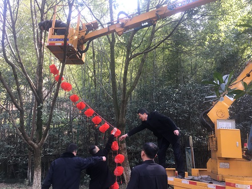 圖為掛好的燈籠 過年掛燈籠是中國古老習(xí)俗,紅色代表喜慶,圓形燈籠寓意團(tuán)圓美滿。該所工作人員利用午休時(shí)間自制大紅燈籠750盞,并拿線連成串,大家借來登高車將燈籠掛在綠蔭道兩旁以及公路下方車輛經(jīng)過的地方。遠(yuǎn)觀這掛好的燈籠,一片紅火,形成春節(jié)期間一道亮麗的風(fēng)景線。 一盞盞紅彤彤的燈籠將隧道所裝點(diǎn)得十分溫暖、祥和,注入了濃濃的年味和活力,同時(shí)也寄予了大家對(duì)新年美好的希望與祝福,希望往來的司機(jī)都能接收到這份祝福,過個(gè)平安祥和的幸福年。 毛譯聆