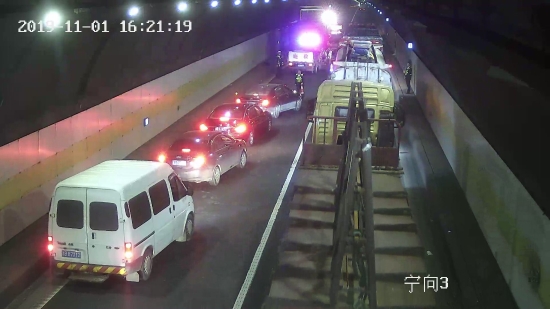隧道內(nèi)三車追尾,“指揮員”“救援隊”“搬運工”齊上陣 11月1日14時23分,黃土嶺隧道所中控員王之佳發(fā)現(xiàn)寧向隧道進洞300米處超車道發(fā)生一起三車追尾交通事故。于是,執(zhí)勤隊員火速趕赴事故現(xiàn)場。 事故現(xiàn)場,一輛貨車橫跨在超車道上,貨車上的桔子散落一地,現(xiàn)場一片狼藉,事故車輛占用了隧道內(nèi)僅有的兩個車道,導致后方車輛一度無法通行。所幸的是司機只有輕微受傷。