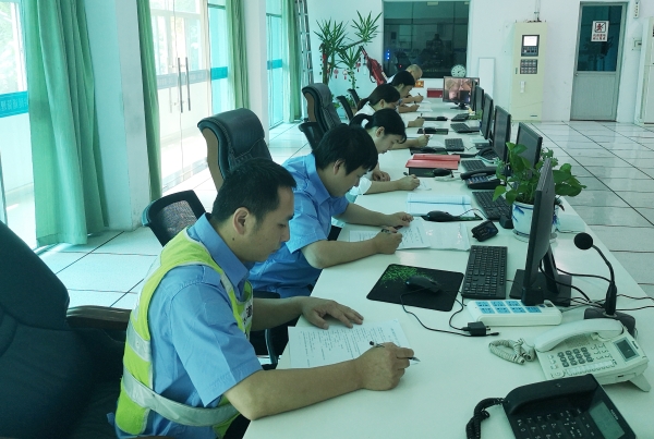 此次測(cè)試題庫內(nèi)容包括中控、電工、安保等專業(yè)知識(shí),分三批次進(jìn)行。隊(duì)員在做完隧道業(yè)務(wù)知識(shí)測(cè)試后,繼續(xù)各崗位“模擬操作”測(cè)試。中控測(cè)試模擬隧道(寧向或溫向)發(fā)生火災(zāi)、追尾、拋錨等事故,按照預(yù)案進(jìn)行操作,以此檢測(cè)中控員工作中熟悉事故處置流程的程度和中控設(shè)備操作使用的能力;電工根據(jù)高桿燈升降電路控制原理圖、以此檢測(cè)電工專業(yè)水平,增加電工的基礎(chǔ)知識(shí),提高維修能力;安保測(cè)試消防水帶的兩帶連接,進(jìn)一步提高隊(duì)伍執(zhí)勤訓(xùn)練水平和滅火救援能力。