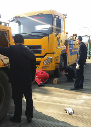 圖為演練現(xiàn)場 廣場上,當(dāng)指揮員下達“拖車兩次增高作業(yè)演練開始”口令后,拖車在輔助工的引導(dǎo)下,駕駛員將拖車緩緩地倒到故障車的前面,停穩(wěn)后,輔助工立馬從工具箱里拿出托叉、方木等附件,將托叉插入托叉座,調(diào)整好位置,駕駛員操縱操作手柄進行第一次托舉鋼板作業(yè)。當(dāng)抬高一定高度后,輔助工將方木填在前輪胎下面,然后放下托臂,重新調(diào)整好位置,進行第二次托舉工字梁作業(yè),直到達到安全高度,輔助工才抽出方木,駕駛員迅速將故障車拖離現(xiàn)場。兩次增高作業(yè)順利完成,演練達到了預(yù)期效果。 演練現(xiàn)場,氣氛熱烈,員工們針對復(fù)雜車型和去年拖車過程中發(fā)生的事故案例,相互探討,并紛紛表示在今后的工作過程中,要根據(jù)車型的實際情況,掌握各種作業(yè)技巧,同時要吸取事故教訓(xùn),增強安全意識,確保作業(yè)安全。 何先林