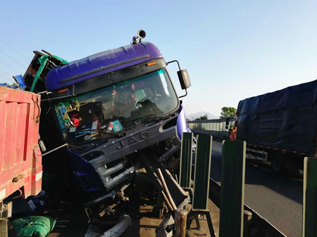 8月25日凌晨4點(diǎn),甬臺(tái)溫高速溫向1648+7路段,一輛運(yùn)啤酒的大貨車因司機(jī)疲勞駕駛,導(dǎo)致車輛撞上中央護(hù)欄而側(cè)翻,啤酒灑滿一地,后方兩輛貨車避讓不及造成多車事故。