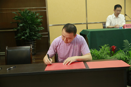 圖為公司黨委副書記、總經(jīng)理張建平與部門(子公司)負責人簽訂《黨風廉政建設責任書》