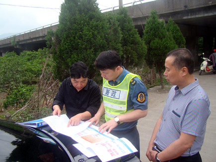 圖為公司安全總監(jiān)項同富與高速路政人員在現(xiàn)場討論整治方案 之前,高速路政大隊通過巡查,發(fā)現(xiàn)公司部分高速橋下存在較多堆放雜物、傾倒垃圾等現(xiàn)象,便提出了在橋下安裝禁令標牌的初步方案,方案包括告示牌設(shè)計內(nèi)容和具體安裝位置。 自接到該大隊的初步整改方案通知后,公司積極配合,迅速召集相關(guān)部門開展行動,再次檢查有問題的部位,并根據(jù)檢查情況細化整改方案,以及具體落實禁令標牌安裝形式、位置、尺寸等事宜,以更合理、科學(xué)地解決問題。 陳科