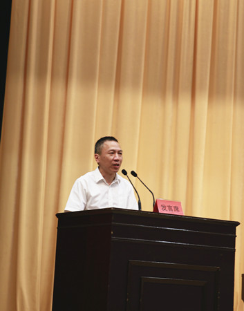 圖為集團(tuán)黨委副書(shū)記、副董事長(zhǎng)、總經(jīng)理張建平在主席臺(tái)上作交流發(fā)言