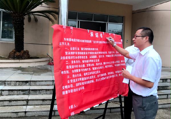 圖為公司副總經(jīng)理章海峰在承諾書上簽名