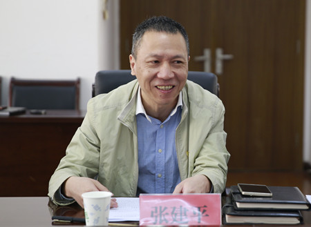 圖為市人大常委會副主任陳祥榮認真聽取調(diào)研匯報