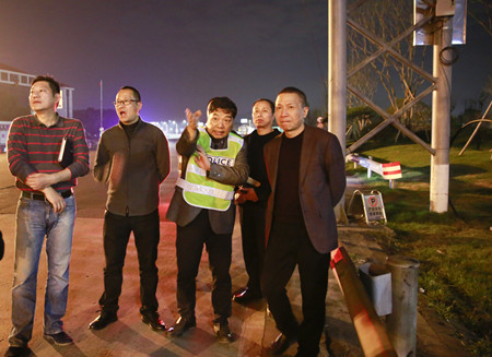 圖為集團總經(jīng)理張建平檢查臺州收費所 協(xié)調(diào)會后已近晚上,張建平又帶領(lǐng)公司副總經(jīng)理章海峰等人員來到臺州收費所,先后查看了員工宿舍、食堂和外廣場,要求盡快恢復(fù)臺州站名燈、車道燈和外廣場路燈照明,并加快推進臺州所車道拓寬改造工作。 張琛