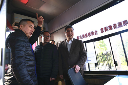 圖為市行政服務(wù)中心黨委副書(shū)記金偉一行在員工寢室參觀