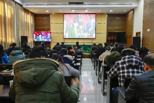 圖為集團(tuán)全體干部職工收看現(xiàn)場(chǎng)