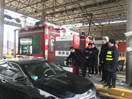 圖為公司總經(jīng)理張建平在溫嶺西收費(fèi)站檢查