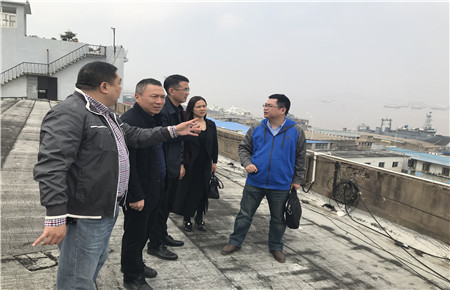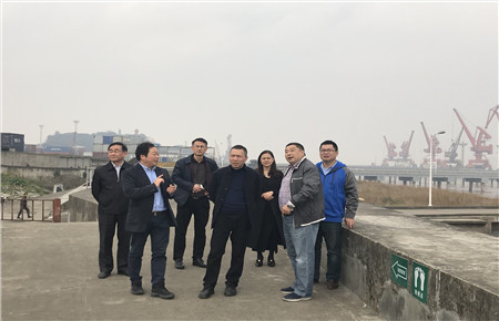 圖為張建平一行人在新碼頭建址考察 會后,在海門港埠總公司總經(jīng)理王宏濤的陪同下,張建平一行人分別實地考察了新、舊碼頭現(xiàn)場。 顧維安