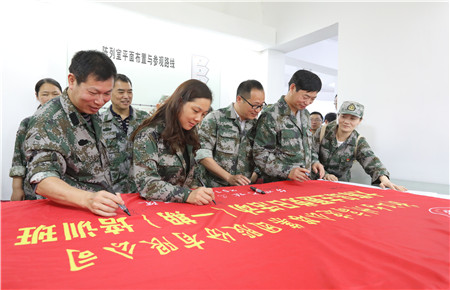 圖為集團(tuán)領(lǐng)導(dǎo)在活動(dòng)橫幅上簽字留念