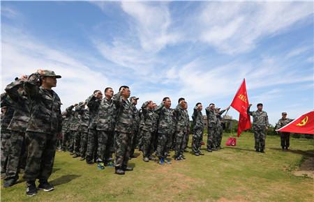 “讓我們重溫入黨誓詞,牢記黨員使命。”當(dāng)鮮紅的黨旗在墾荒紀(jì)念碑下鋪開的時(shí)候,大家的思緒拉回現(xiàn)實(shí)。激情燃燒的歲月是歷史,從歷史中汲取力量,不忘初心,弘揚(yáng)和傳承艱苦創(chuàng)業(yè)精神,鍥而不舍地克服集團(tuán)發(fā)展中的難關(guān)難題,才是此行活動(dòng)真正的意義所在。“我志愿加入中國共產(chǎn)黨......”面向黨旗,大家齊齊舉起右手,跟隨集團(tuán)黨委委員陳保衛(wèi)一起大聲宣誓,墾荒碑下回聲嘹亮,一句句錚錚誓言體現(xiàn)出黨員干部無比堅(jiān)定的信念。