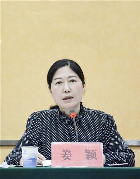 圖為市國(guó)資委黨工委委員、副主任姜穎講話