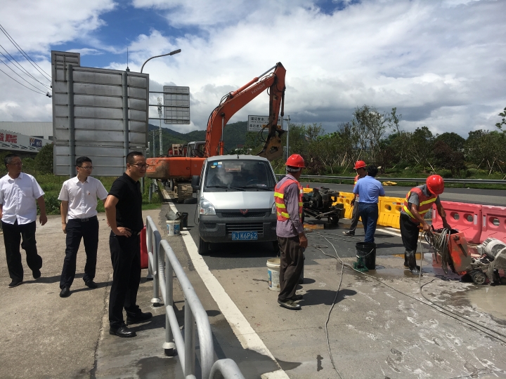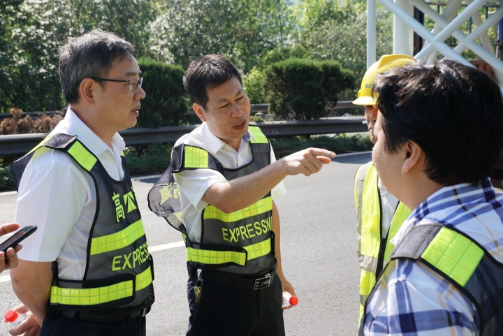 在甬臺溫高速公路臺州段溫州方向主線K1668+200M處現(xiàn)場,陳文波詳細了解龍門架吊裝的施工工序、取消省界收費站總體施工進展情況、項目時間節(jié)點、人員班組安排及安全措施準備情況等。