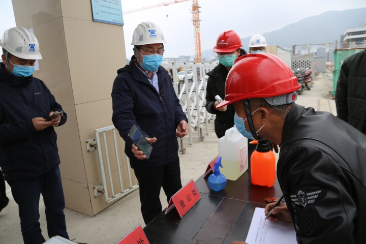 圖為陳文波向項(xiàng)目負(fù)責(zé)人了解防疫和復(fù)工情況以及提出相關(guān)要求