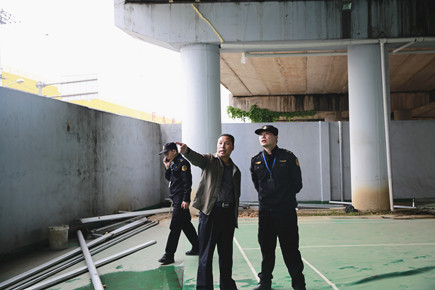 圖為公司安保部負(fù)責(zé)人與高速路政人員在現(xiàn)場(chǎng)指導(dǎo)拆除作業(yè)