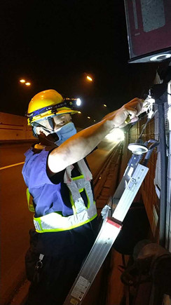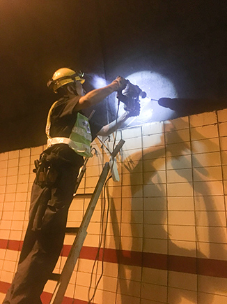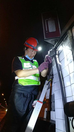 圖為工作人員安裝消防燈燈泡 大溪嶺—湖霧嶺隧道全長4116米,為保障隧道內(nèi)行車安全、暢通、舒適,定期組織安排清洗隧道兩壁墻體、邊溝,檢修內(nèi)部各項機電設(shè)施成了維養(yǎng)中心每季必不可少的工作之一。而每次清洗檢修必將涉及封道,為最大程度減少因封道對社會造成的負面影響,中心工作人員早在一周前就對隧道內(nèi)各項損壞機電設(shè)備進行摸底統(tǒng)計,以便合理制定維修方案和安排施工人員。 12號早上7點,隨著封道工作就緒,兩組清洗隊伍分別從隧道中部開始向兩頭清洗,六組專業(yè)燈具維修人員站在貨車腳手架上由北往南逐個推進,發(fā)現(xiàn)一盞修復(fù)一盞,或更換燈管、或更換觸發(fā)器、或更換鎮(zhèn)流器,對于一些同時有多個配件壞死或腐蝕嚴重的燈具就直接采取整體更換措施,大大提高了工作效率。而中心工作人員除了現(xiàn)場全程協(xié)調(diào)管理以外,還負責(zé)修復(fù)隧道兩壁逃生標志及報警電話等多個指示牌。按照之前制定的計劃,六人兵分兩組由隧道兩頭分別向中間修復(fù),這樣既能與其他工作同時進行又不造成相互干擾。另外一人則配合隧道所一起在登高車協(xié)助下,對洞內(nèi)各類攝像頭進行逐個清理,全場人員各司其職,各盡其責(zé),現(xiàn)場一派忙碌的景象。 4公里多長的隧道,由于流動性差,洞內(nèi)空氣質(zhì)量比霧霾嚴重數(shù)倍,僅一只口罩根本凈化不了廢氣,但由于時間緊,任務(wù)重,中心隊員和施工人員顧不上惡劣的環(huán)境,努力和時間賽跑,兩日下來共修復(fù)(清理)損壞燈具100余套,各類標志指示牌40余塊,攝像頭30余個,恢復(fù)了隧道內(nèi)各項機電設(shè)施的正常運行,排除一切安全隱患,有效保證了隧道安全暢通。 項寅曉