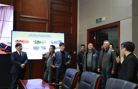 圖為考察組在市應(yīng)急指揮中心會商室觀摩 當(dāng)天下午,考察組一行先行來到臺州市應(yīng)急指揮中心參觀。在觀看了臺州城市宣傳短片和應(yīng)急管理介紹視頻后,市辦預(yù)案管理處處長柯岳兵帶領(lǐng)大家實地察看了中心機房、會商室、應(yīng)急廣播室、新聞發(fā)布廳等地。考察人員認真聽取講解的同時,還不時拿起手機拍攝記錄,觀摩途中不斷交流著經(jīng)驗與心得。