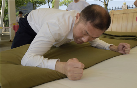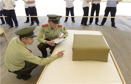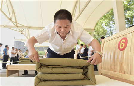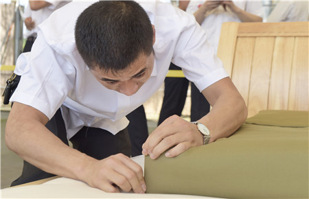 教官用手量量被子上下厚度,四周細細觀察,在兩床“豆腐塊”被子之間反復(fù)來回查看了幾遍,又與另一個教官指指點點商量了好久,不僅是參賽者,圍觀者都開始緊張了。確實,按照內(nèi)務(wù)整理要求,這兩床已被疊成豆腐塊的被子折得有棱有角,被面光滑,上下勻稱,外行人看來就是一模一樣的完美,沒有任何區(qū)別了。“讓他們都晉級吧?!迸杂^者說。教官笑著搖搖頭,對大家解釋道:“3號床勝出,因為它是雙面折法,在規(guī)定時間內(nèi)兩面修整程度都一樣平整,這樣比起來,5號床稍遜一籌?!?/span>
