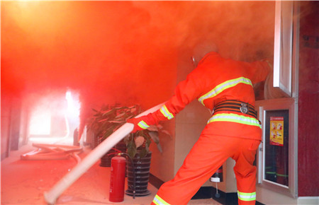 圖為消防隊員模擬火情