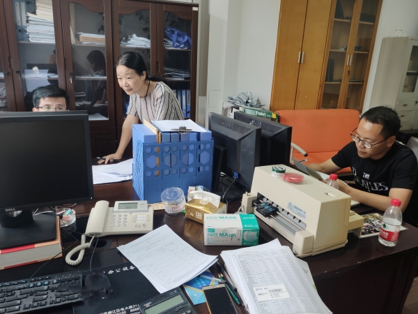 圖為在財(cái)務(wù)部門現(xiàn)場檢查