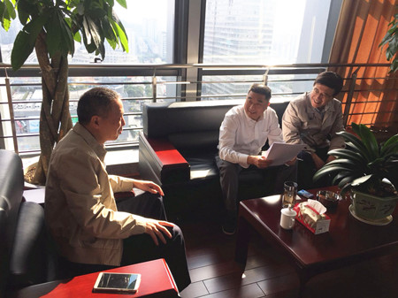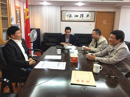 圖為市國資委主任徐豪和集團(tuán)總經(jīng)理張建平一起走訪市財(cái)政局股東單位