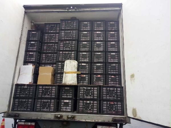 早上10點(diǎn)40分左右,這輛運(yùn)蘋(píng)果的貨車(chē)駛?cè)胧召M(fèi)站的一號(hào)崗?fù)?,司機(jī)師傅說(shuō)自己運(yùn)的是蘋(píng)果,根據(jù)公司規(guī)定,綠農(nóng)車(chē)檢查必須開(kāi)車(chē)門(mén)檢查貨物。憑著多年的檢查經(jīng)驗(yàn),當(dāng)班班長(zhǎng)童軍偉發(fā)現(xiàn)這輛綠農(nóng)車(chē)有問(wèn)題,覺(jué)得重量遠(yuǎn)遠(yuǎn)不夠,可能不符合“綠農(nóng)”免費(fèi)政策。果不其然,車(chē)廂中“深藏玄機(jī)”,左右兩側(cè)各有一排玻璃鋼魚(yú)箱,這就給檢查增加了難度。當(dāng)班班長(zhǎng)要求司機(jī)師傅把最后兩排箱子拿掉,想檢查玻璃魚(yú)缸,然而這個(gè)司機(jī)極其不配合,還惡意刁難工作人員,說(shuō)什么也不搬蘋(píng)果。
