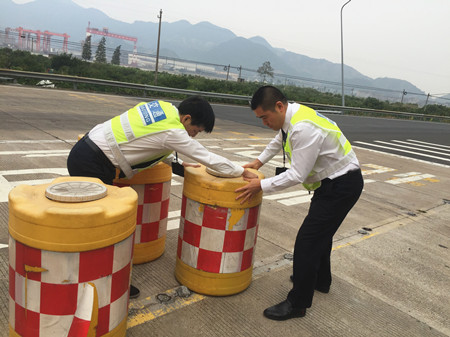公司沿線四個收費站平穩(wěn)實現(xiàn)路面養(yǎng)護施工期入口轉(zhuǎn)換 因G15沈海高速臺州段于2017年10月28日零時至11月16日24時封閉施工,施工期間,公司所轄路段溫嶺西、臺州南、臺州、臨海南實行交通管控,公司沿線各收費站、工程和交警、臺州市公路局等部門單位緊密配合,多措并舉,平穩(wěn)實現(xiàn)收費站入口轉(zhuǎn)換。 為配合公司道路養(yǎng)護和黃土嶺右洞改造施工,公司征費系統(tǒng)提前在各收費站入口LED屏上發(fā)布施工信息,連夜安排趕印50000份施工公告發(fā)放至四個收費所,提醒過往司乘人員提前規(guī)劃施工期間的出行路線。