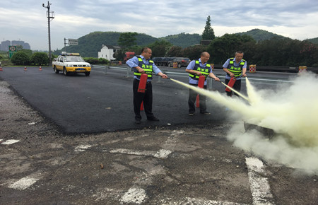 接到報警后,值勤隊長立即啟動應(yīng)急預(yù)案,迅速帶領(lǐng)4名執(zhí)勤隊趕赴現(xiàn)場,按規(guī)范要求擺放反光錐桶,用滅火器進行滅火。所有參演人員按照預(yù)案要求,各司其職,分工有序,報警、緊急出動、預(yù)警、疏散、救火,全套動作一氣呵成,圓滿完成演練任務(wù)。 通過本次演練活動,增強了應(yīng)急隊員安全意識,進一步規(guī)范了應(yīng)急搶險程序,提升了隧道消防應(yīng)急快速反應(yīng)和救災(zāi)能力。
