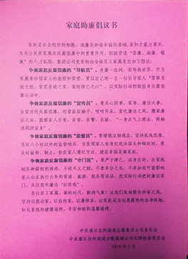 以家助廉,杜微慎防 集團開展一封家庭助廉倡議書活動