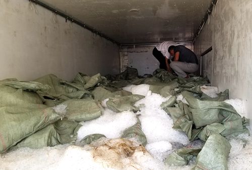 李貴陽打開車輛后廂門,迎面撲來一陣?yán)滹L(fēng),一眼望去車廂里面全部是一袋袋的花蛤,上面還壓著袋裝的冰塊和零碎的碎冰,車廂內(nèi)部看不清楚。憑借多年的工作經(jīng)驗(yàn)和認(rèn)真負(fù)責(zé)的工作態(tài)度,李貴陽二話沒說,直接爬上濕滑的車廂,踏過冰袋和碎冰,深入到車廂里面去檢查,把冰袋掀開后,結(jié)果發(fā)現(xiàn)下面全部是空桶。原來這樣做既可以增加貨物面積也可以使重量加重,從而達(dá)到綠農(nóng)政策的免費(fèi)通行要求。