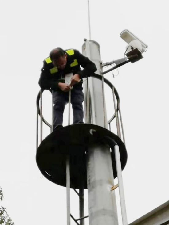 圖為搶修人員在安裝無線網(wǎng)橋 面對難題,中心隊員并沒有退縮,而是積極面對、集思廣義,想到了利用無線網(wǎng)橋點對點的橋接通迅功能,將斷點處的攝像機視頻信號通過網(wǎng)橋無線連接,傳輸?shù)脚R近攝像機光端機上,隨后再一起將信號傳輸?shù)奖O(jiān)控中心,實現(xiàn)網(wǎng)絡(luò)和通迅共享的解決方案。這既可以避免因封道施工造成車輛擁堵,又可以為公司節(jié)省近萬元維修費用。然而在實際操作中,還要解決另外一個棘手的問題,就是無線網(wǎng)橋供電電流和電壓無法直接從攝像機電瓶中獲取,但這些同樣難不到中心隊員們,他們又想到了之前路面拆卸下來逆變器,利用它的逆變原理成功解決網(wǎng)橋供電問題。 說降就降的氣溫,加上路面飛馳而過的車輛帶來的陣陣寒風(fēng),吹得隊員瑟瑟發(fā)抖。但他們都知道要是晚一天修復(fù)網(wǎng)絡(luò),路面就會多一份隱患。在中心負責(zé)人的帶領(lǐng)下,搶修人員按照之前設(shè)定的方案,一人負責(zé)云臺上面的無線網(wǎng)橋安裝,另外兩人負責(zé)地面逆變器及網(wǎng)絡(luò)的安裝。由于大家分工明確、配合默契,不到半天時間,路面兩處斷點視頻信息再次出現(xiàn)在了監(jiān)控中心的大屏上。 項寅曉