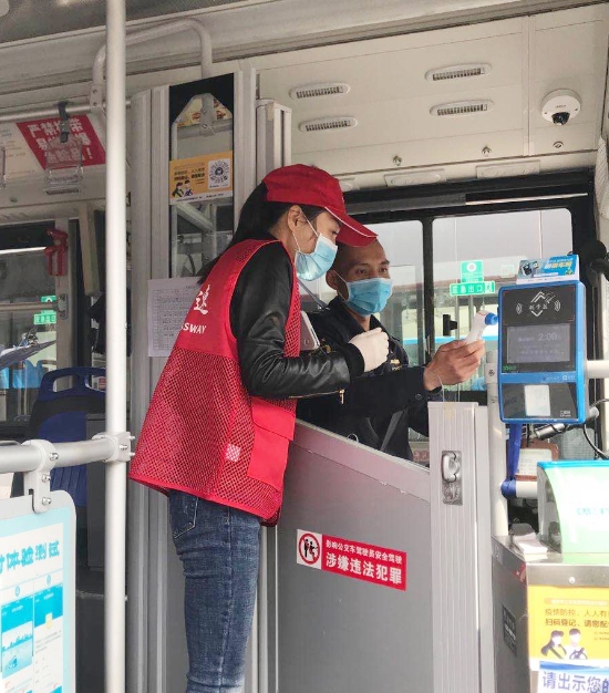 3月18日上午,臺(tái)州高速計(jì)財(cái)部職員毛譯聆早早就到站,一一戴好口罩、護(hù)目鏡、一次性手套,提前3分鐘走上所跟的108路班車(chē)。一路上,看見(jiàn)有乘客上車(chē),她便等在車(chē)門(mén)前,量體溫、引導(dǎo)年輕人掃碼自行登記資料,幫助老年人實(shí)名登記身份信息,“安檢”通過(guò)后讓乘客有序上車(chē),并禮貌勸導(dǎo)乘客間隔而坐,降低病毒感染的風(fēng)險(xiǎn)。