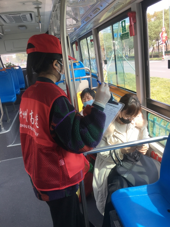 圖為志愿者跟車(chē)防疫服務(wù) “我所在的一班車(chē)來(lái)回一趟是1個(gè)多小時(shí),疫情期出行人員不多,大家上車(chē)前都會(huì)認(rèn)真配合檢查?!泵g聆說(shuō)道,她一次連續(xù)跟車(chē)要3個(gè)多小時(shí)。 疫情在前,國(guó)企擔(dān)當(dāng),臺(tái)州高速人會(huì)持續(xù)共戰(zhàn)疫情,哪里有需要,挺身在哪里,以行動(dòng)詮釋高速責(zé)任,展現(xiàn)高速風(fēng)采。