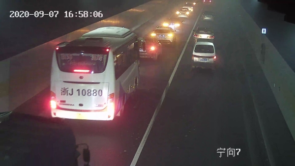 車子剛進(jìn)入隧道,火眼金睛的中控員徐海源立即察覺,鎖定該畫面,經(jīng)過仔細(xì)辨認(rèn),該車沒有火光源,可能是車輛故障導(dǎo)致的。由于貨車不停地冒出濃煙,散發(fā)的濃煙彌漫在整個隧道里,造成隧道內(nèi)的車輛視線不清,人員呼吸困難,后方途經(jīng)車輛紛紛打開雙閃燈,或緩行、或停車、或避讓,一時間,交通秩序混亂,大量的車輛滯留在隧道里,而后方來車越來越多,情況越來越緊急。中控員見狀,第一時間向監(jiān)控中心匯報情況,監(jiān)控中心要求密切關(guān)注該輛車的行駛情況,同時,把該情況報告給執(zhí)勤隊長蔡星,他要求中控員打開寧向排風(fēng)扇,正向排風(fēng),疏散濃煙,同時做好應(yīng)急準(zhǔn)備工作。