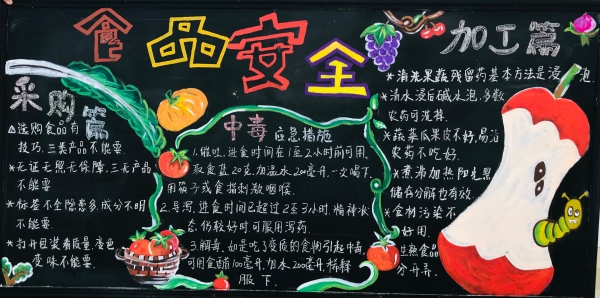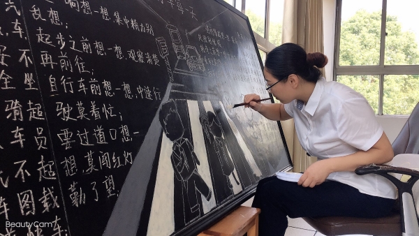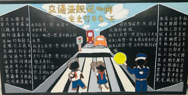 活動(dòng)前期,臨海南收費(fèi)所臨時(shí)組建五人板報(bào)小分隊(duì),充分利用空余時(shí)間搜集有關(guān)安全教育資料,對(duì)內(nèi)容、畫面進(jìn)行認(rèn)真整理、篩選。最終決定三個(gè)板塊,以提高安全教育為目的,以不同風(fēng)格主題來呈現(xiàn),從多方面、多角度設(shè)計(jì)與繪制,達(dá)到了更好的安全教育宣傳效果。 活動(dòng)開展后,參與者們分配好各自的任務(wù)后,出黑板報(bào)的工作便熱火朝天地展開了。大家利用自身的特長,通過粉筆字、繪畫等藝術(shù)形式,對(duì)黑板報(bào)進(jìn)行了精心的設(shè)計(jì),主題鮮明,內(nèi)容充實(shí),圖文并茂,趣味性強(qiáng),全方位、多角度地宣傳了《消防安全》、《食品安全》、《交通安全》三大主題。其中在交通安全宣傳方面,如何使交通安全內(nèi)容,更加直觀形象、簡單易懂的、眾人易于接受呢?大家通過反復(fù)嘗試,決定打破傳統(tǒng)模式,避免枯燥說教,把交通宣傳教育知識(shí)融入到兒歌中,通過朗朗上口的兒歌形式,傳達(dá)一些基本的交通規(guī)則,幫助大家養(yǎng)成自覺遵守交通規(guī)則的意識(shí),提高自我安全防護(hù)能力。最后經(jīng)過大家日夜趕工,黑板報(bào)的工作在大家的共同努力下順利完成。