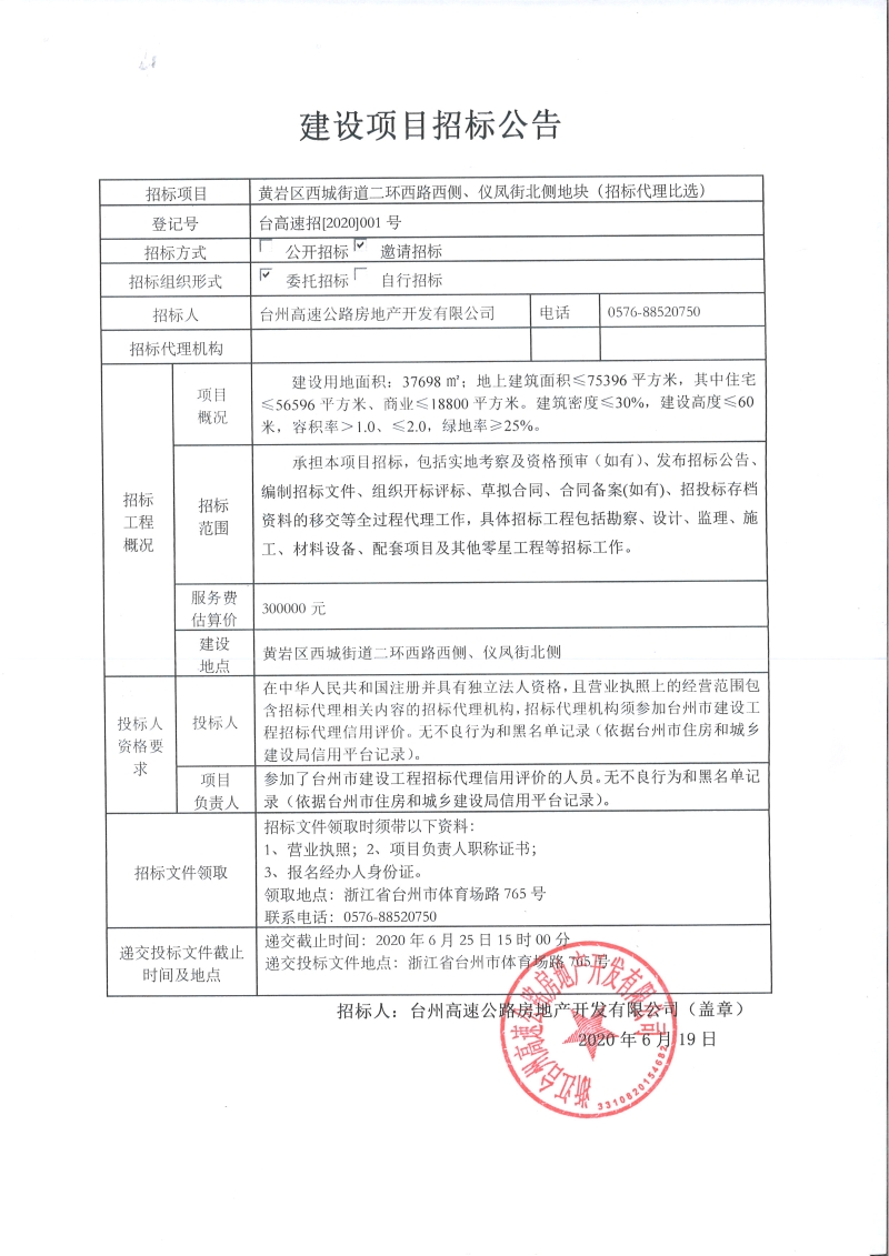 黃巖區(qū)西城街道二環(huán)西路西側(cè)、儀鳳街北側(cè)地塊(招標(biāo)代理比選)招標(biāo)公告