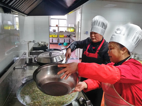 浸了一夜的早米,用石磨磨成米漿,細(xì)膩而幼滑,被靜置在盆里?!耙话愣加妹追叟菟?,口感粗糙,而且吃起來沒有香頭?!崩ㄒ贿呎f,一邊將香腸切碎與豆腐、冬筍、胡蘿卜、芹菜、香菇、蠶豆瓣翻炒著。旁邊的大鍋里,長長的豆面在骨頭湯里翻滾著,像一棵棵舞蹈的海草。徐徐倒入的米漿,被不停地?cái)嚢?,“要是粘到鍋,就會有焦糊味,這鍋羹就算廢了?!泵诐{好像不夠,利花有些懊惱,“要是在家里,米漿都會多準(zhǔn)備一些,不夠就隨手添,我?guī)У竭@里就這些,也沒得加了?!本徒性谝贿呑鰩褪值拿妹脤毣ㄓ妹娣酆蜕椒郏ㄒ簿褪欠矸郏剿杵饋恚谷脲伬?,湯漸漸濃稠起來,倒入之前炒好的配料,加上切得細(xì)細(xì)的綠綠的芥菜梗、芥菜葉、海蠣,鍋里不時冒起大泡,香氣四溢。 為照顧吃不慣糟羹的同事,食堂還準(zhǔn)備了一鍋甜的山粉糊。來自臺州各縣市區(qū)的同事,按各自飲食習(xí)慣選擇了咸的或甜的。有說芹菜的味道蓋過了芥菜清香的,有說沒有加入芋頭口感不夠糊的,但撲鼻的香氣和濃厚豐富的口感立刻讓人忘了挑剔。對我來說,碧綠的芥菜葉和白胖的海蠣肉是整碗羹的顏值擔(dān)當(dāng)和靈魂所在。 每個元宵節(jié),對于在崗的同事們是沒有花燈可看、沒有燈謎可猜的,也不能與家人聚在一起吃羹。車道上此刻正是流量高峰期,大家匆匆吃完,都要趕著上崗。食堂大姐把多出的糟羹和山粉糊放進(jìn)蒸飯鍋保溫,叮囑大家下班后再來吃點(diǎn),這個吃了不扛餓。此時,除了食物最能體現(xiàn)節(jié)日氣氛外,還有那一份特意為你留著的溫?zé)岣屓烁袆印?/span> 鄭瑛芝