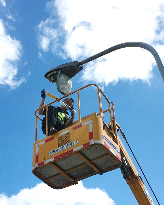 “我動(dòng)作快而且都已經(jīng)在上面了,換來(lái)?yè)Q去又要浪費(fèi)不少時(shí)間,早點(diǎn)修好早點(diǎn)恢復(fù)通車(chē)?!碑?dāng)完成第一盞路燈,大家都勸他下來(lái)再換個(gè)人時(shí),被他婉拒了......