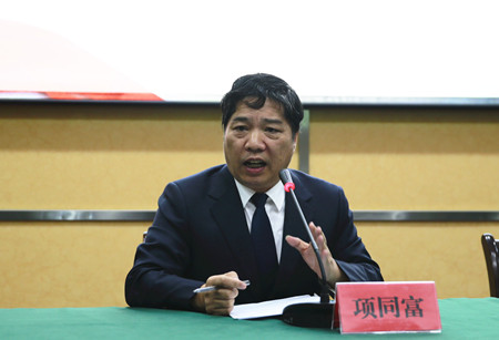 圖為集團(tuán)黨委副書記、總經(jīng)理張建平對(duì)學(xué)習(xí)領(lǐng)會(huì)落實(shí)黨的十九大精神進(jìn)行全面部署